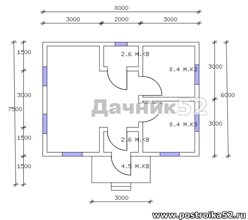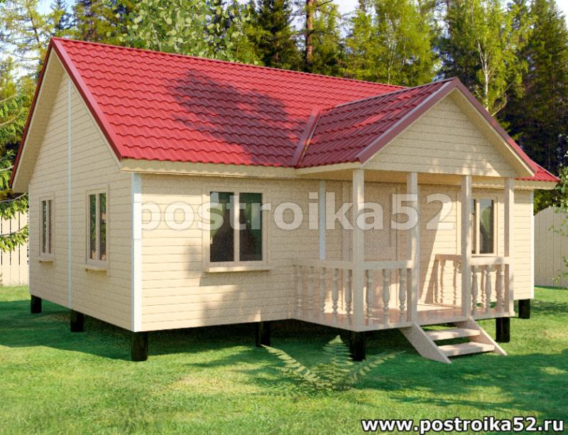 Дачный дом 6 х 8 одноэтажный с крыльцом проект Прима 1.