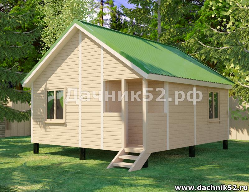 Каркасный садовый домик 5х6 под ключ одноэтажный давно завоевал симпатию у нижегородских дачников. Проект каркасного домика 5х6 с небольшой летней верадой подойдёт для проживания в любое время года.