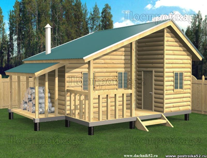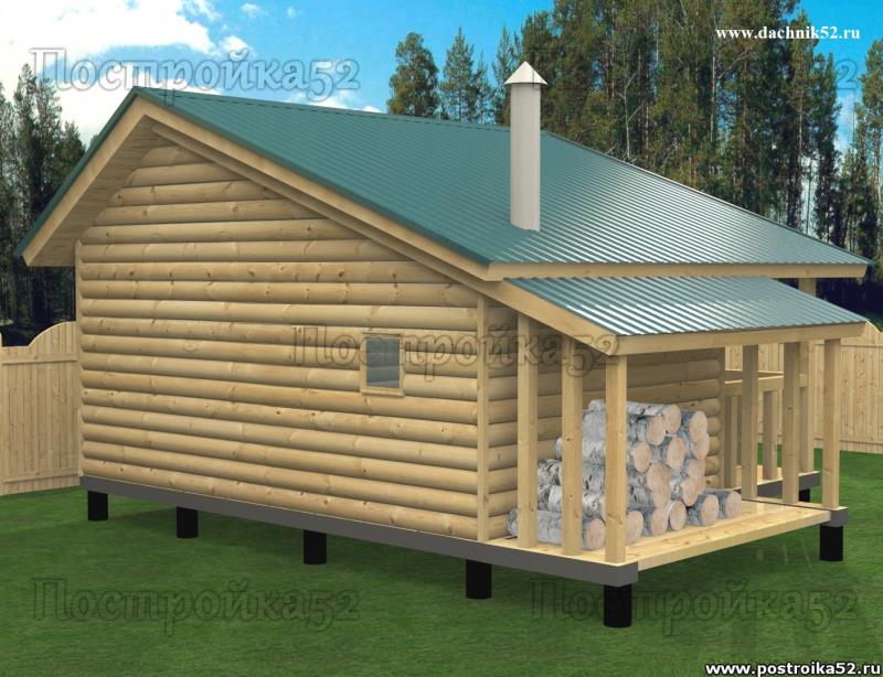 Каркасная баня 6 х 6 с дровницей Кедр.