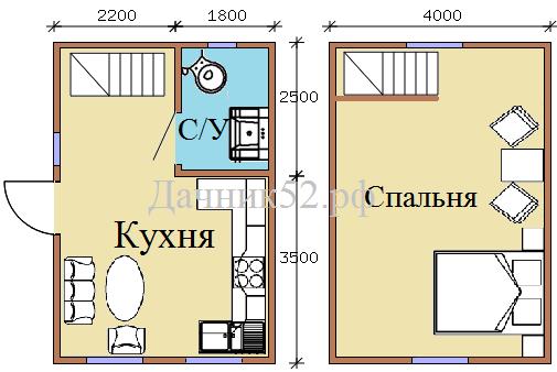 Размеры дома: 4,0 х 6,0 Терраса 2,0 х 6,0