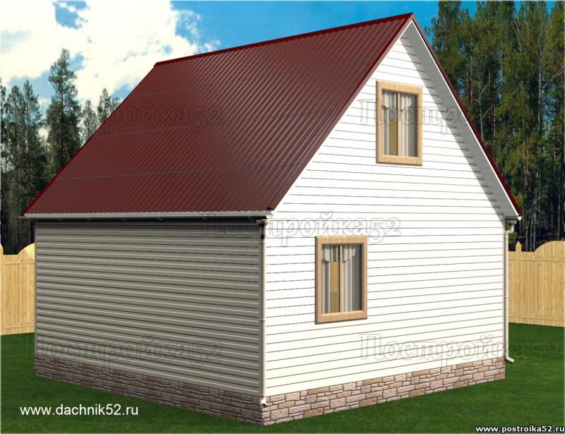 Дачный дом 5 х 6 с мансардой, двухскатной крышей Чайка 1