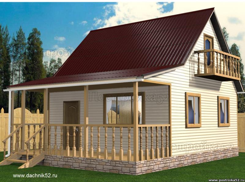 Дачный дом 6х6 с мансардой, верандой. Балкон можно не заказывать.