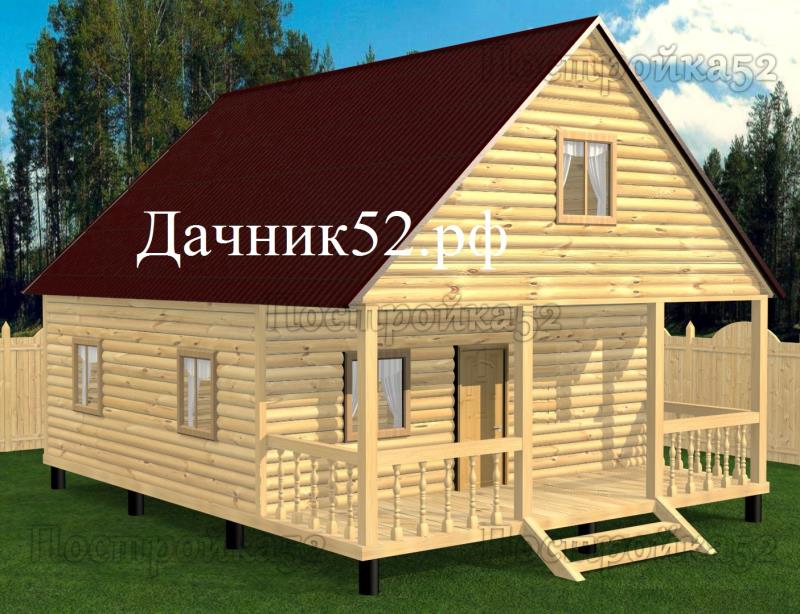 Каркасный дачный дом 6х8 с мансардой, террасой проект Комфорт Т- 3