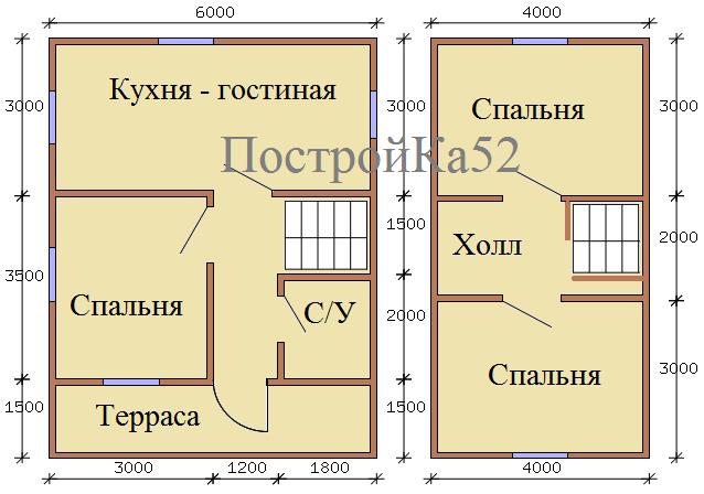 Размеры дома: 6,0 х 8,0