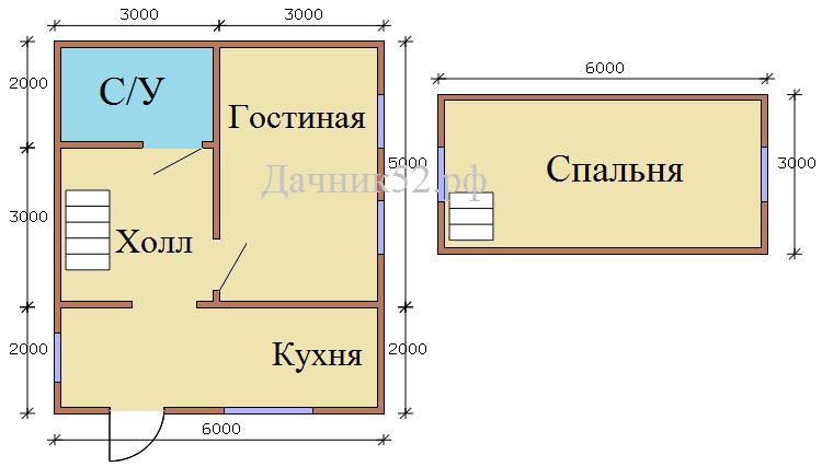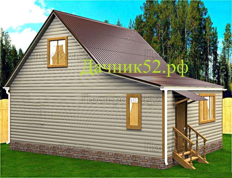 Дачный каркасный дом 6х7 с мансардой санузлом проект Чайка 4