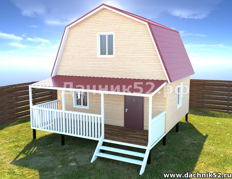 Дачный каркасный дом 5 х 6 с мансардой, санузлом, верандой.