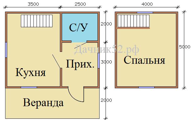 Размеры: 5,0 х 6,0, веранда 2,0 х 6,0