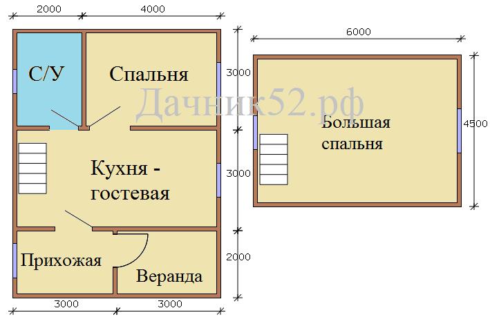 Помещения: санузел, кухня, прихожая, веранда, две спальни, кухня - гостевая.