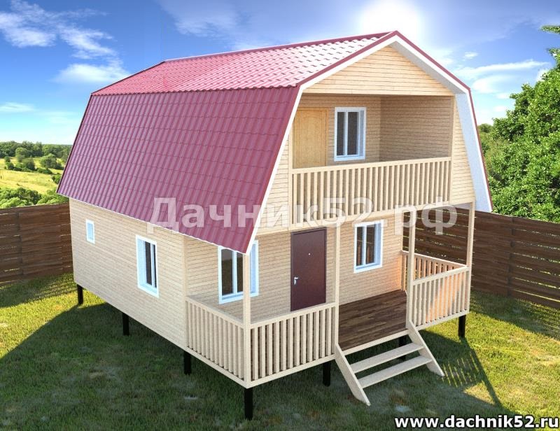 Каркасный дом 6 на 8 с мансардой, верандой, балконом.