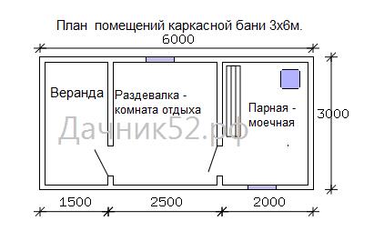 - Каркасная баня 6х6