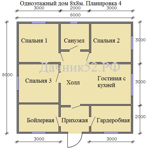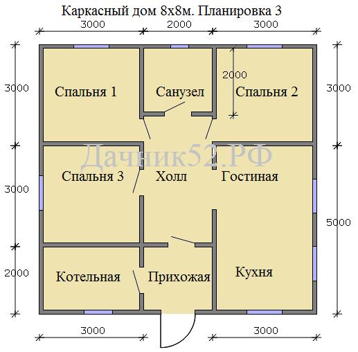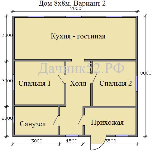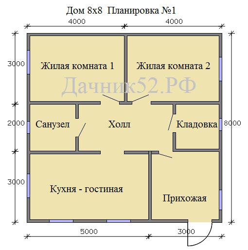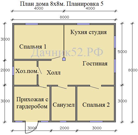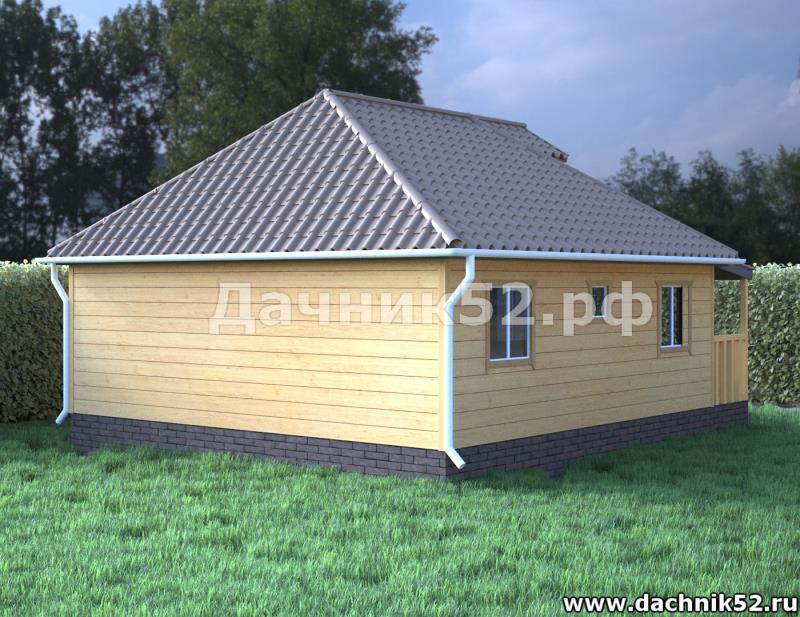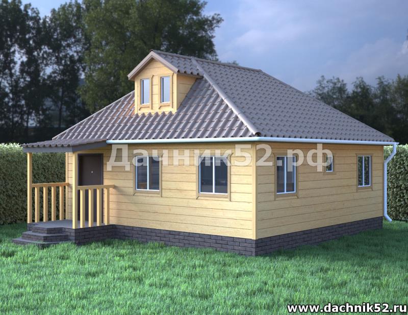 Дом каркасный 8 х 8 со слуховым окном, вальмовой крышей.