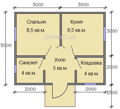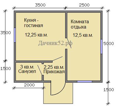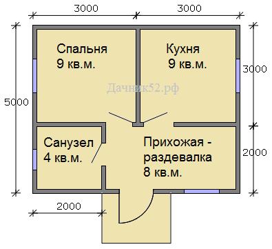Одноэтажный садовый домик 5х6 с санузлом. Планировка №2 дороже на 20000-00 рублей