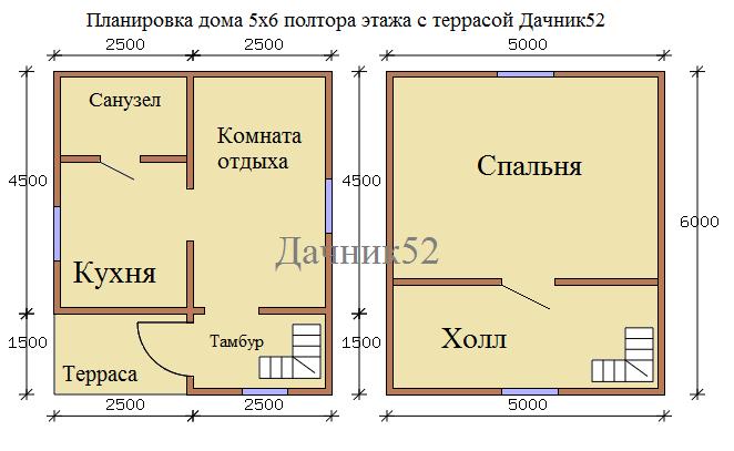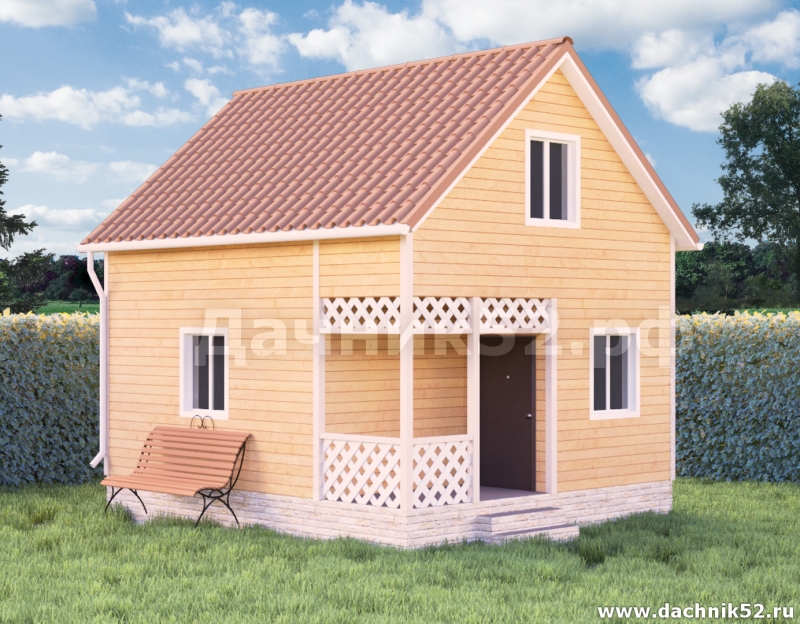 Каркасный дачный дом 5 х 6 полтора этажа с санузлом, террасой Кремёнки 10.