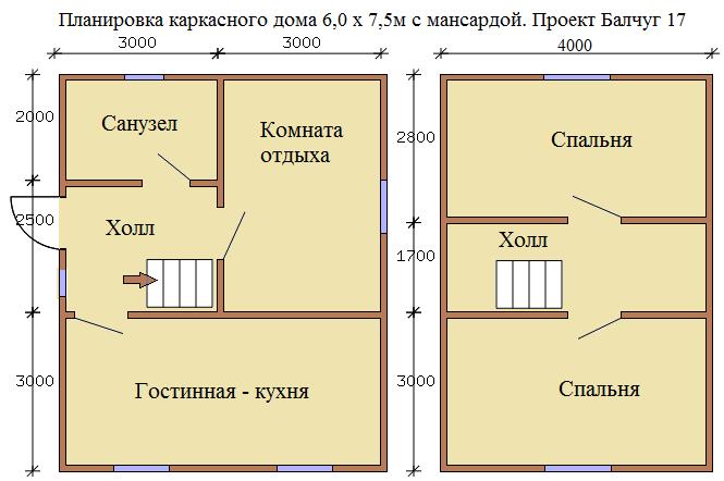 Размеры дома: 6,0 х 7,5