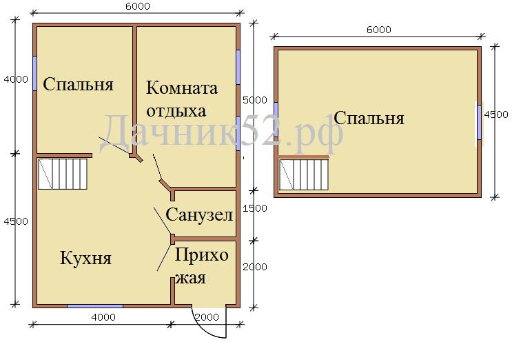Помещения: прихожая, санузел, две спальни, кухня гостевая, комната отдыха