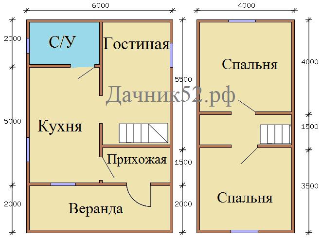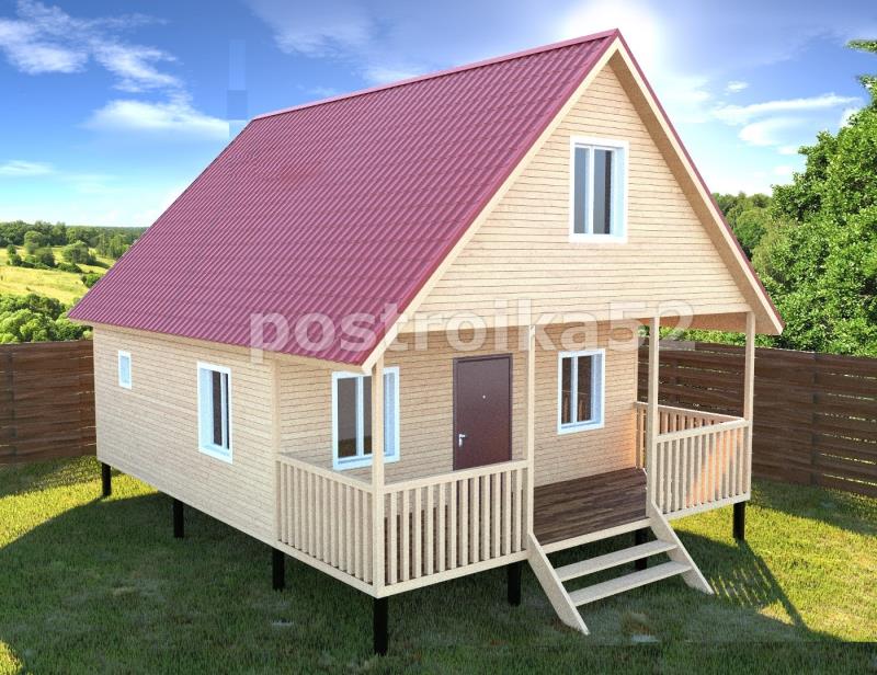 Каркасный дом 6 х 9 с мансардой, верандой Кедр 3