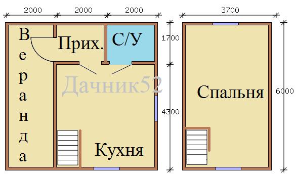 Помещения: прихожая, санузел, кухня, спальня, веранда.