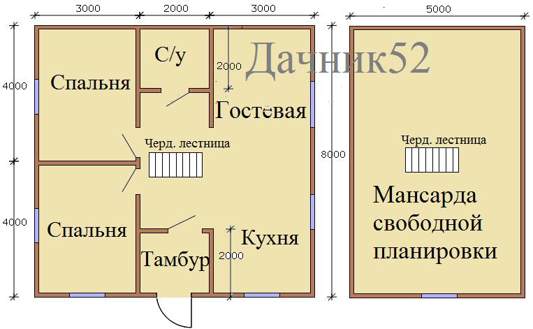 Размеры дома: 8,0 х 8,0
