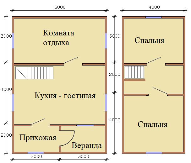 Помещения: две спальни,  прихожая, кухня  гостиная, санузел, веранда, комната отдыха