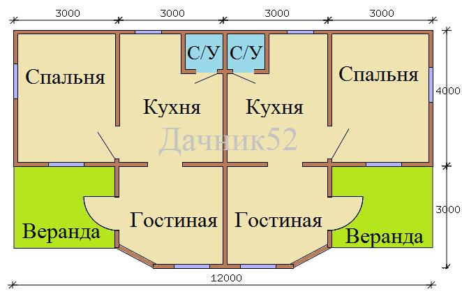 Каркасный дом дачный дуплекс на две семьи Прима 18.