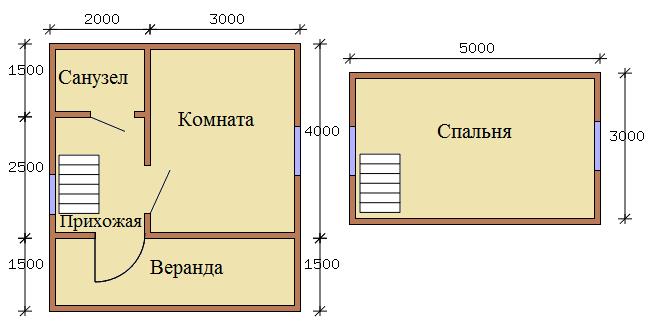Помещения: спальня, прихожая, санузел, веранда, комната под кухню.