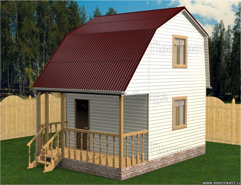 Дачный каркасный дом с ломаной двухскатной крышей проект Аист 8.