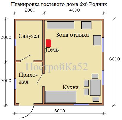 Размеры дома: 6,0 х 6,0