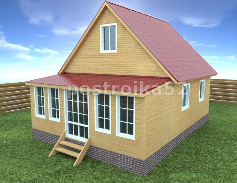 Каркасный дом с застеклённой и утеплённой верандой проект Балчуг 19.