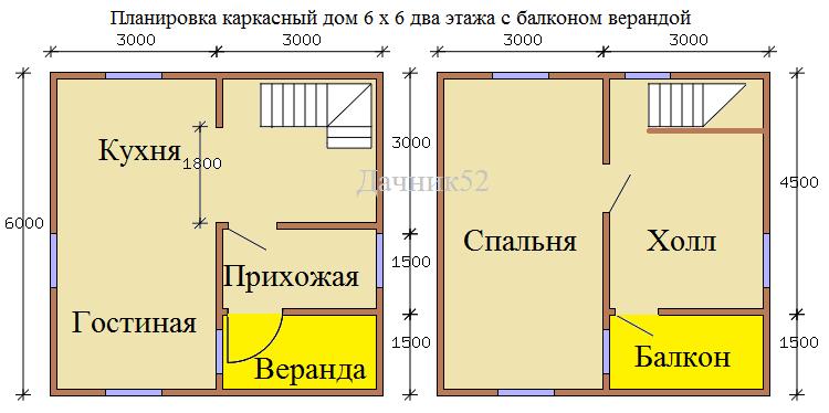 Помещения: веранда, прихожая, холл, кухня - гостевая, спальня, балкон.