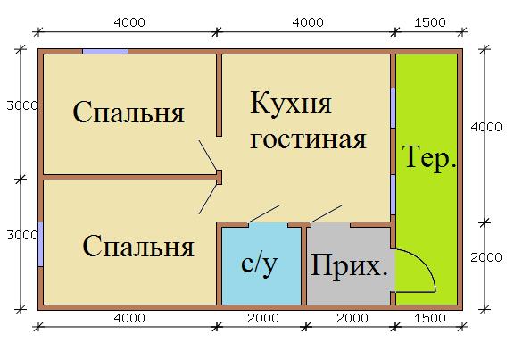 Помещения: терраса, санузел, спальня, кухня, гостиная, прихожая, крыльцо.