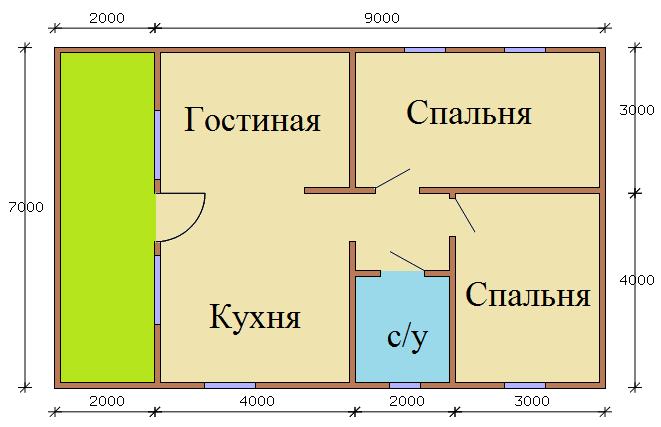 Помещения: терраса, санузел, две спальни, кухня, гостиная.